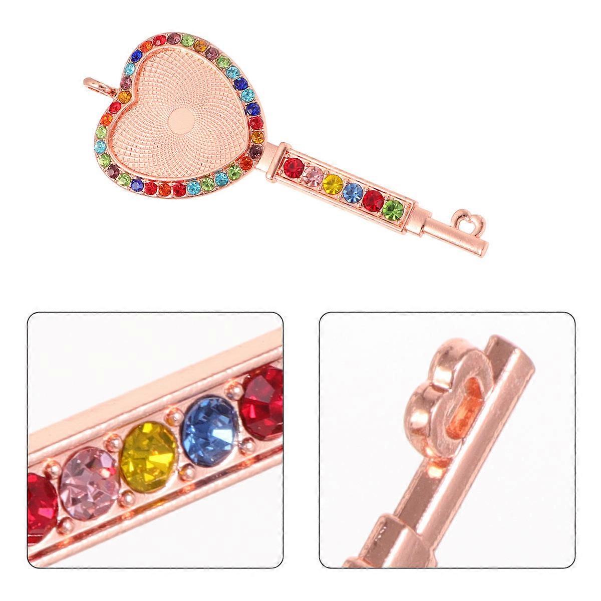 Peach Heart Key Pendant Alloy Charm for Necklace 10Pcs Creative Diamond Set