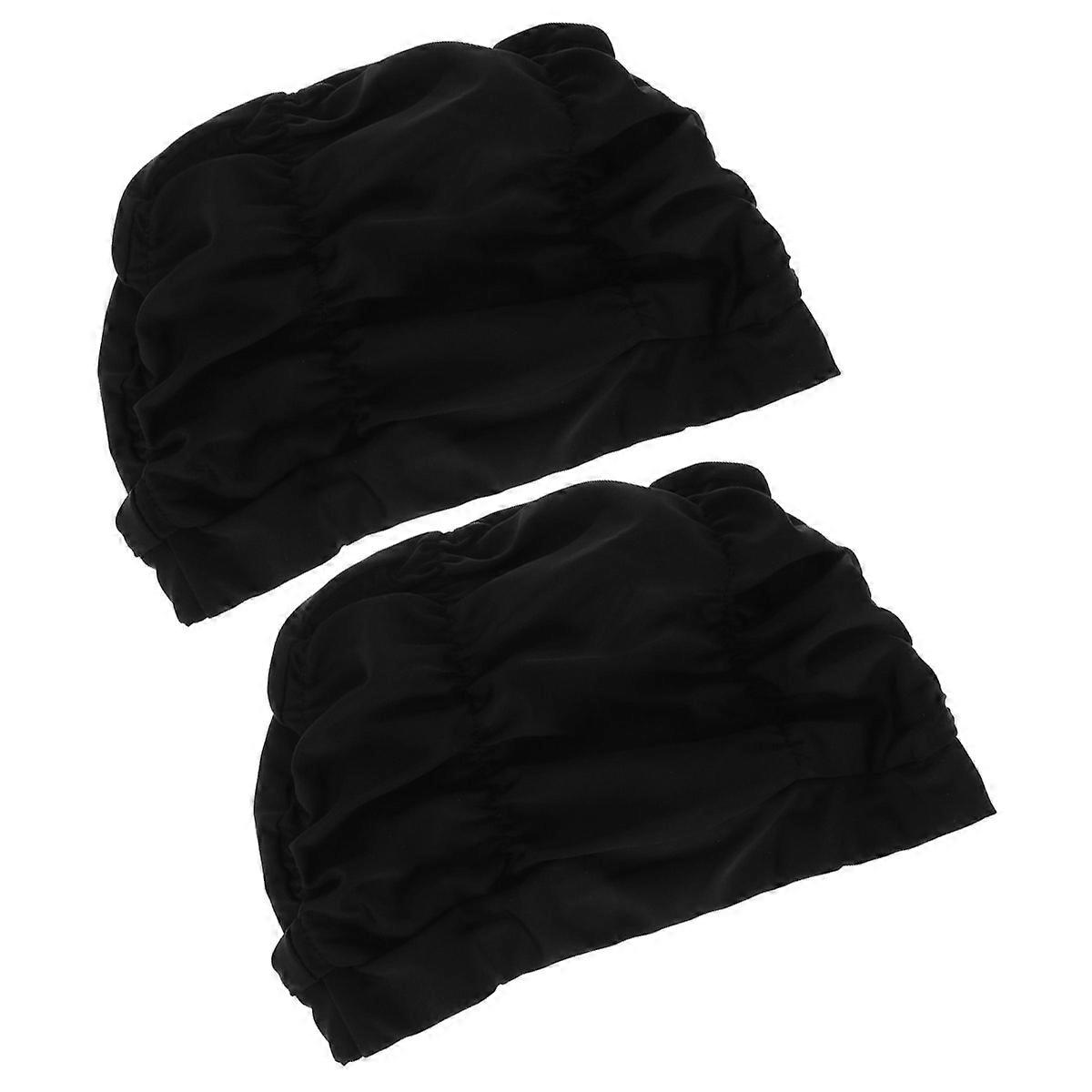 Women Swim Cap Pleated Swimming Hat for Swimming 2Pcs Black Waterproof