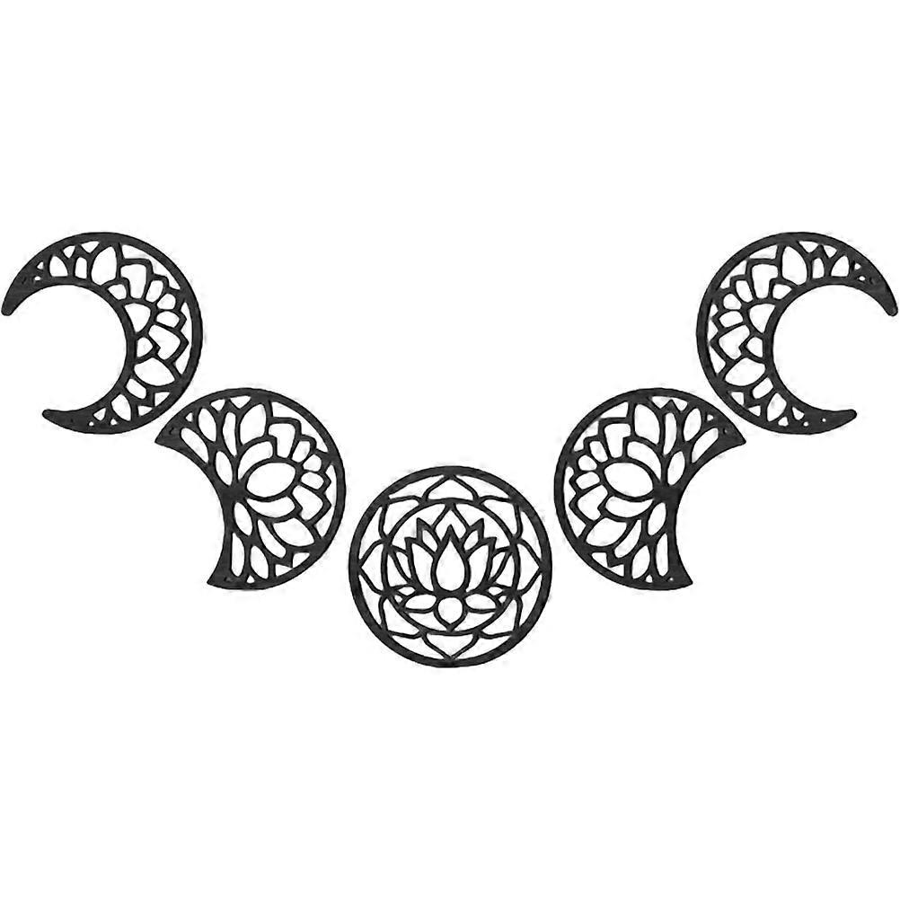 5Pcs Moon Phase Wall Decoration Minimalist Style DIY Room Ornament With Black Wooden Material