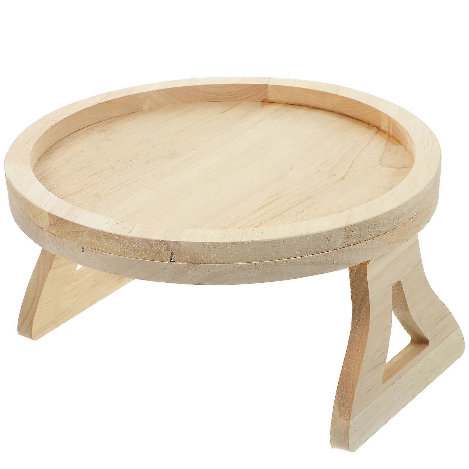 Round Wooden Tray Sofa Armrest Tray Table Foldable for Home Use