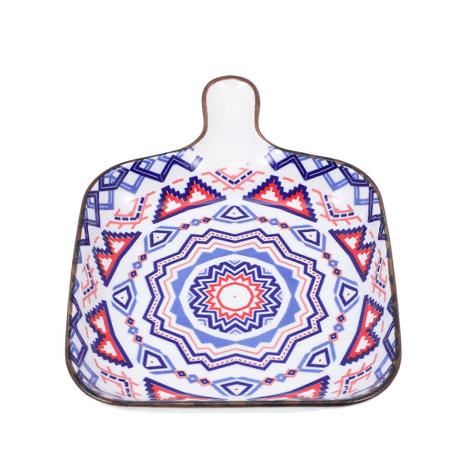 Ceramic Baking Plate Heat Resistant Single Handle Design For Households Blue Color 22X16CM 1Pcs