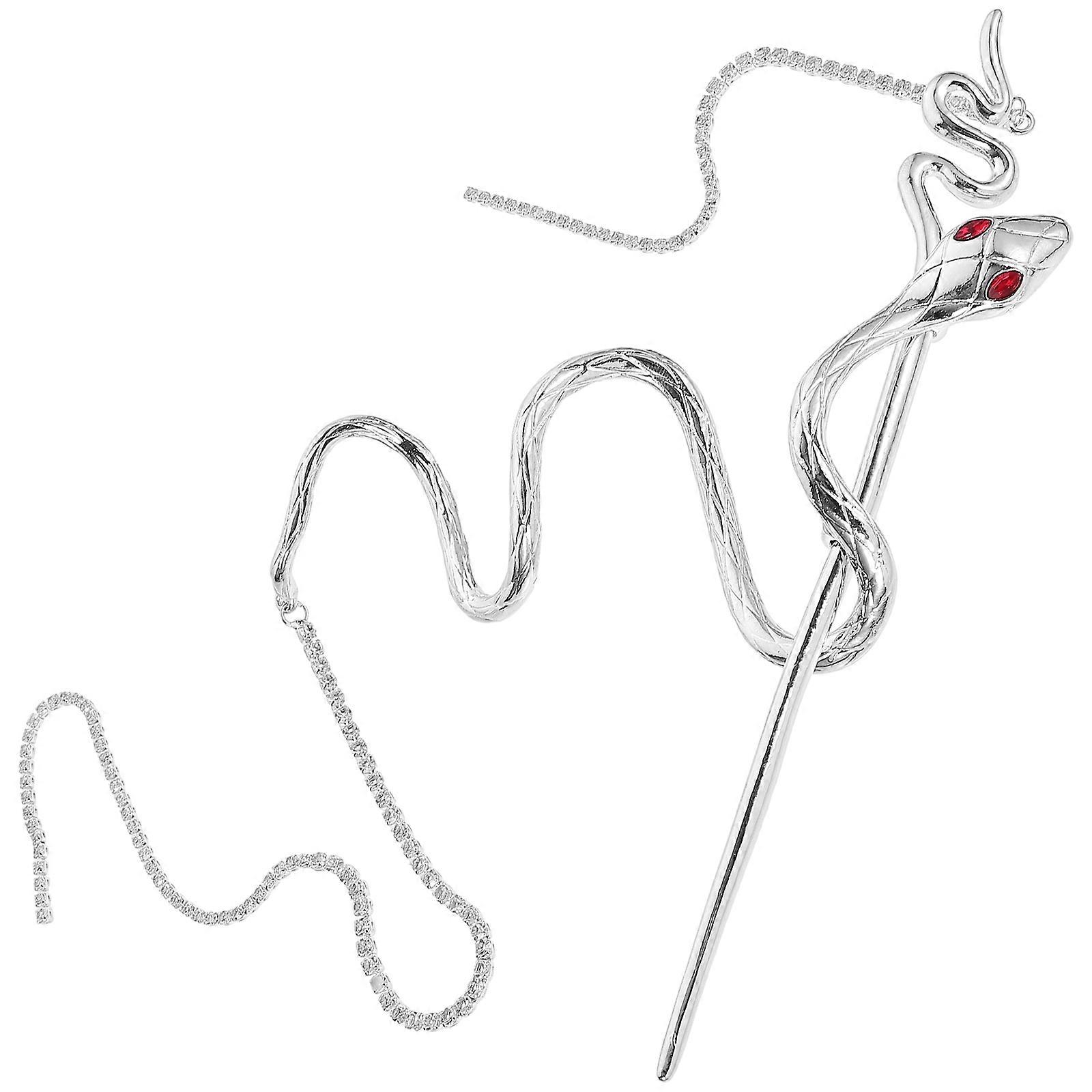 Vintage Hair Chopsticks Metal Snake Hair Pins Wig Long Hair Accessory Silver 19.00X15.00X2.00cm 1Pack