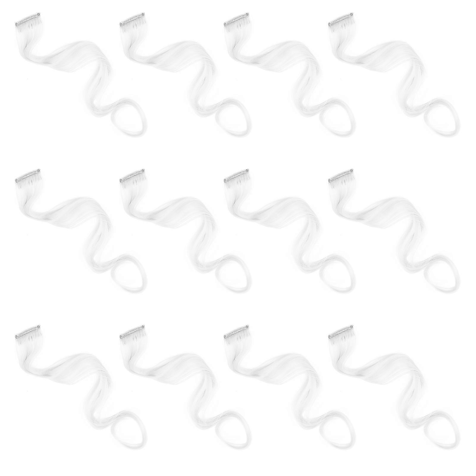 Curly Human Hair Extensions High Temperature Wire Wig For Parties White 50cm X 3.2cm X 0.1cm 12Pcs