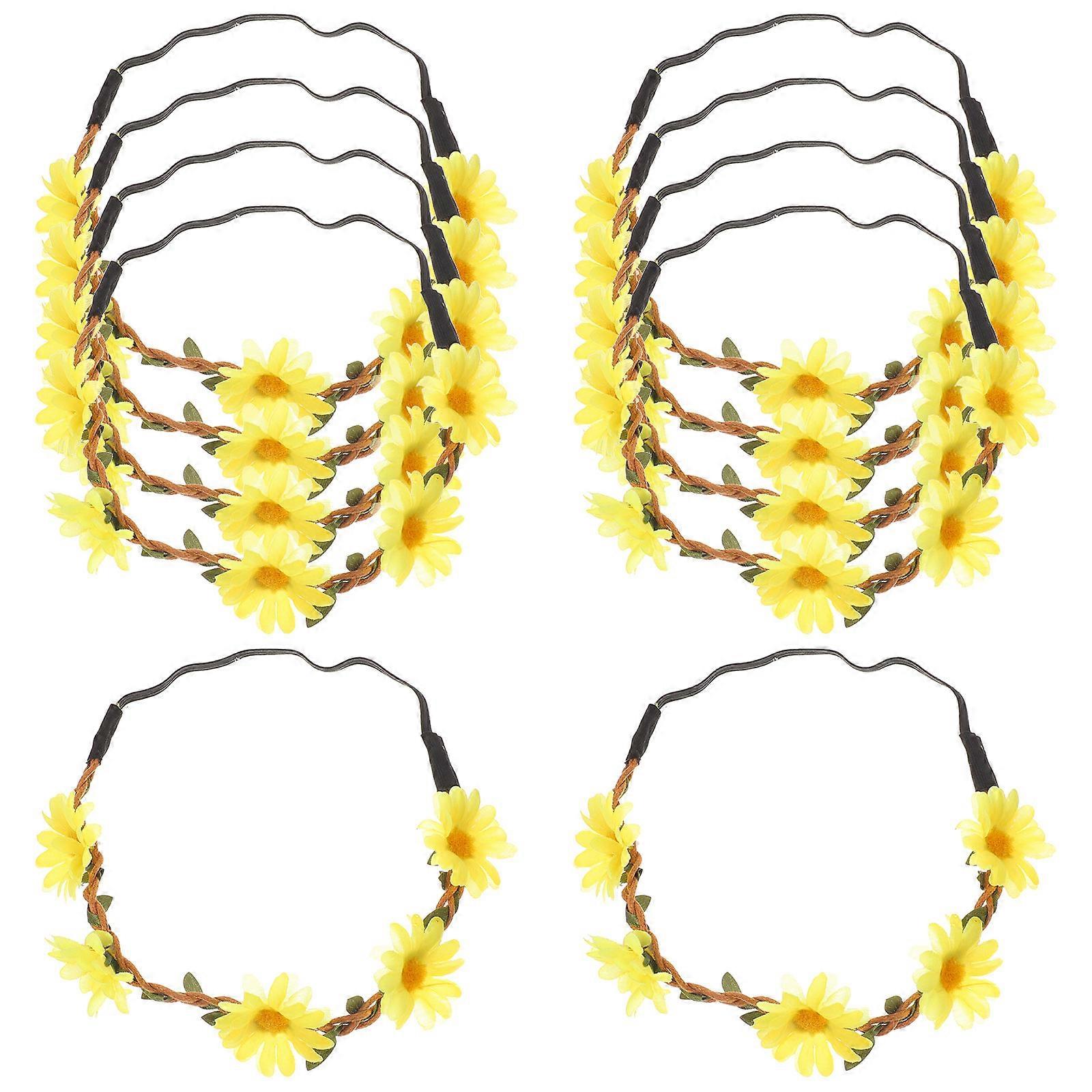 Daisy Flower Headbands Floral Shape Headdress Wedding Festival Party Fabric Yellow Comfortable 10Pcs