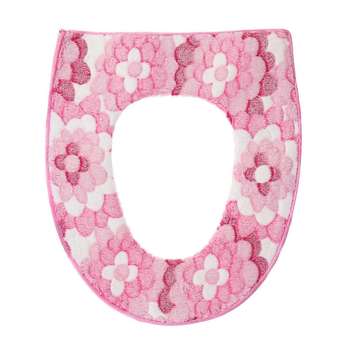 Toilet Seat Lid Covers Bathroom Pink Washable Thickened Flannel With Self Adhesive Tapes 1Set