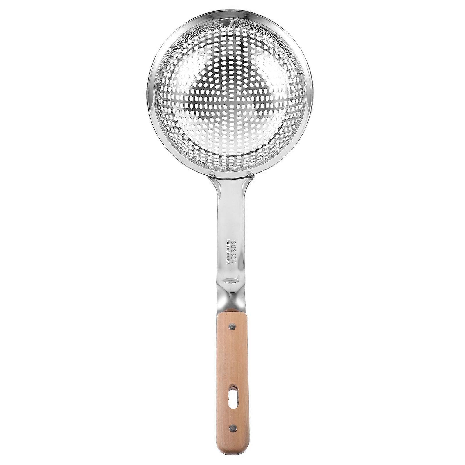 Strainer Skimmer Stainless Steel Slotted Spoon For Cooking Kitchen Tool Round Handle 16.5×6.9×1in Straining 1Pcs