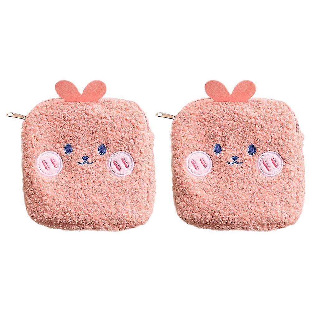 Sanitary Napkin Bag Cartoon for Storage 2Pcs Pink Plush Tampon Bags