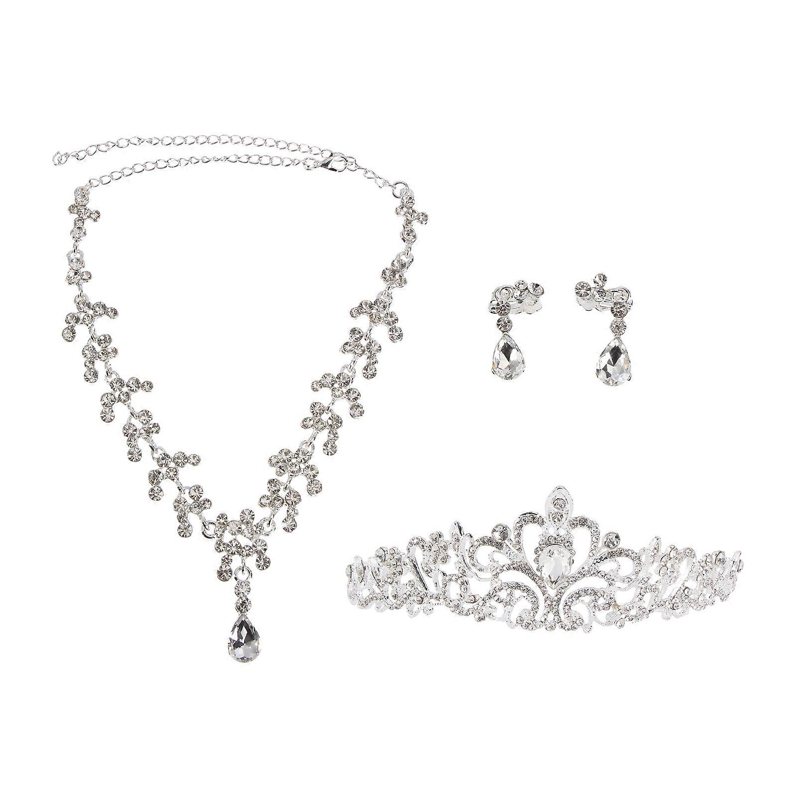 Wedding Crown Bridal Tiara Set with Necklace and Earrings