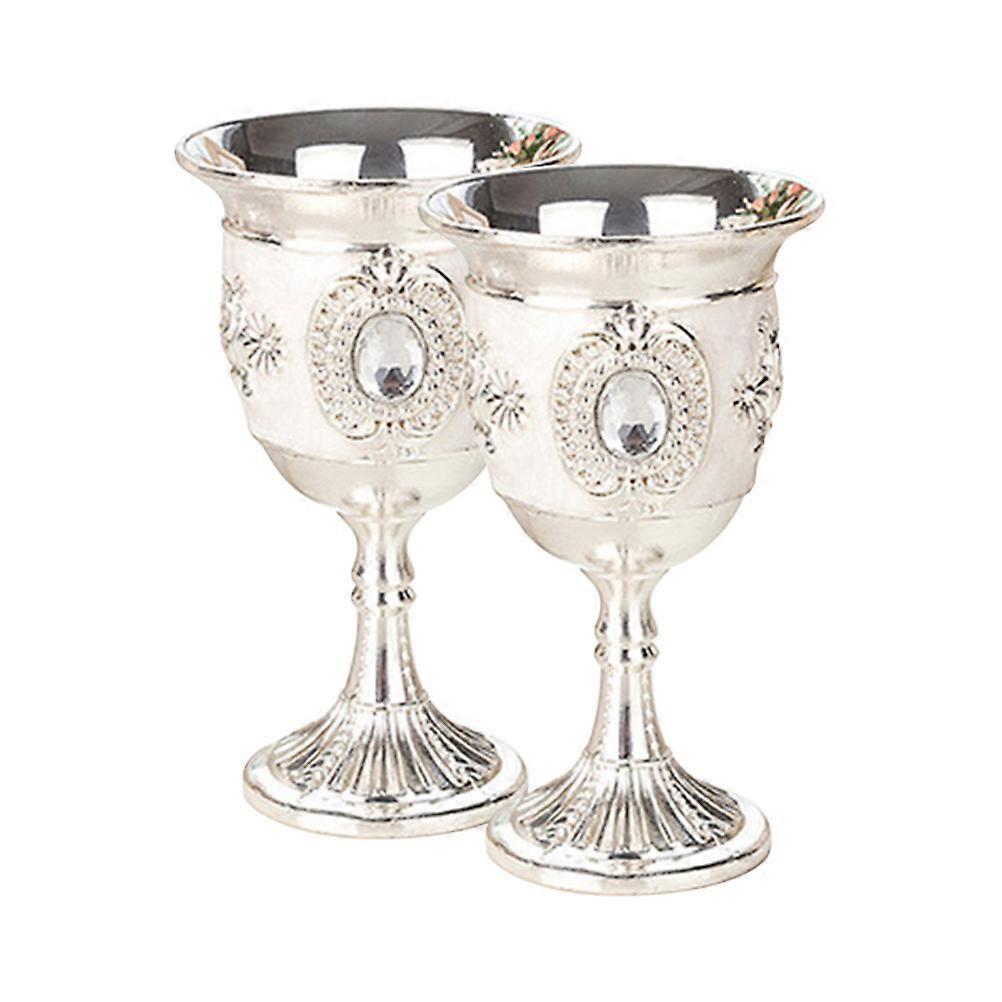 Silver Goblets Retro Style Wine Cup Banquet Use 7.50X3.70X3.70CM Storage 2Pcs
