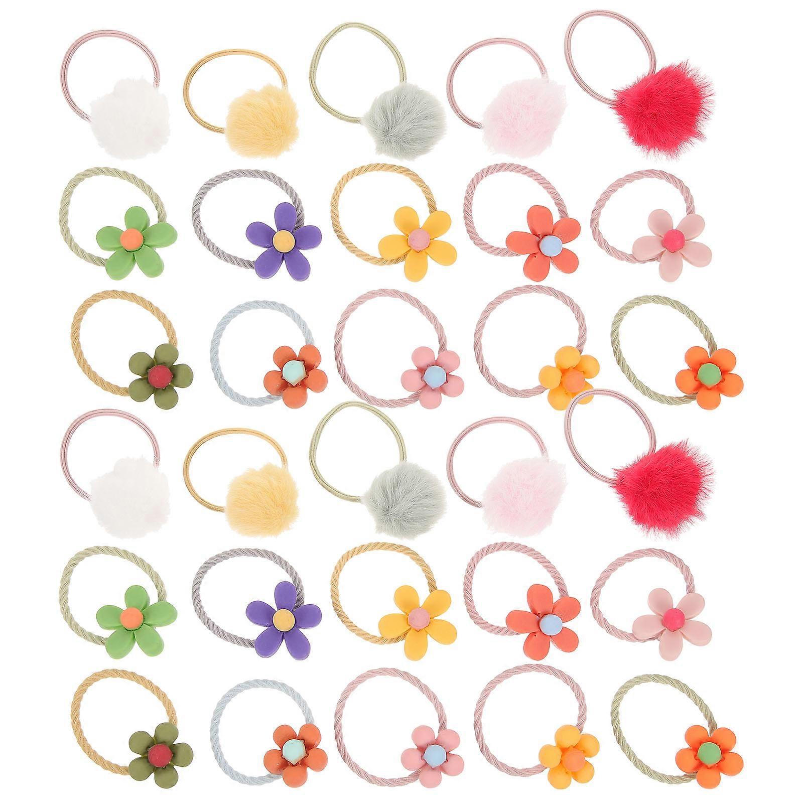 Elastic Flower Hair Ties 30Pcs Hair Decorations For Girls Assorted Color Stylish Ponytail Holders