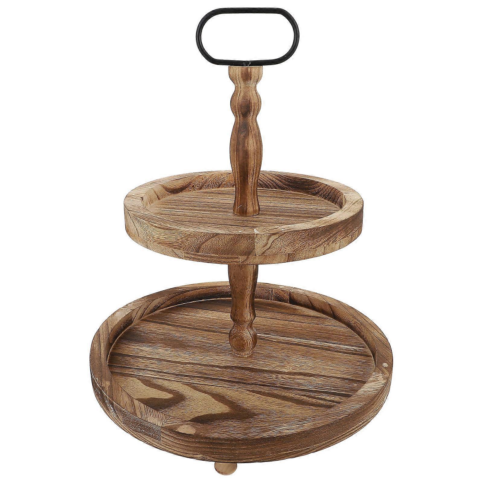 Wooden Cupcake Display Tower Stand For Homeowners Party Event 2-Layer Brown 15.52X14.15X14.15 Inch 1 Set