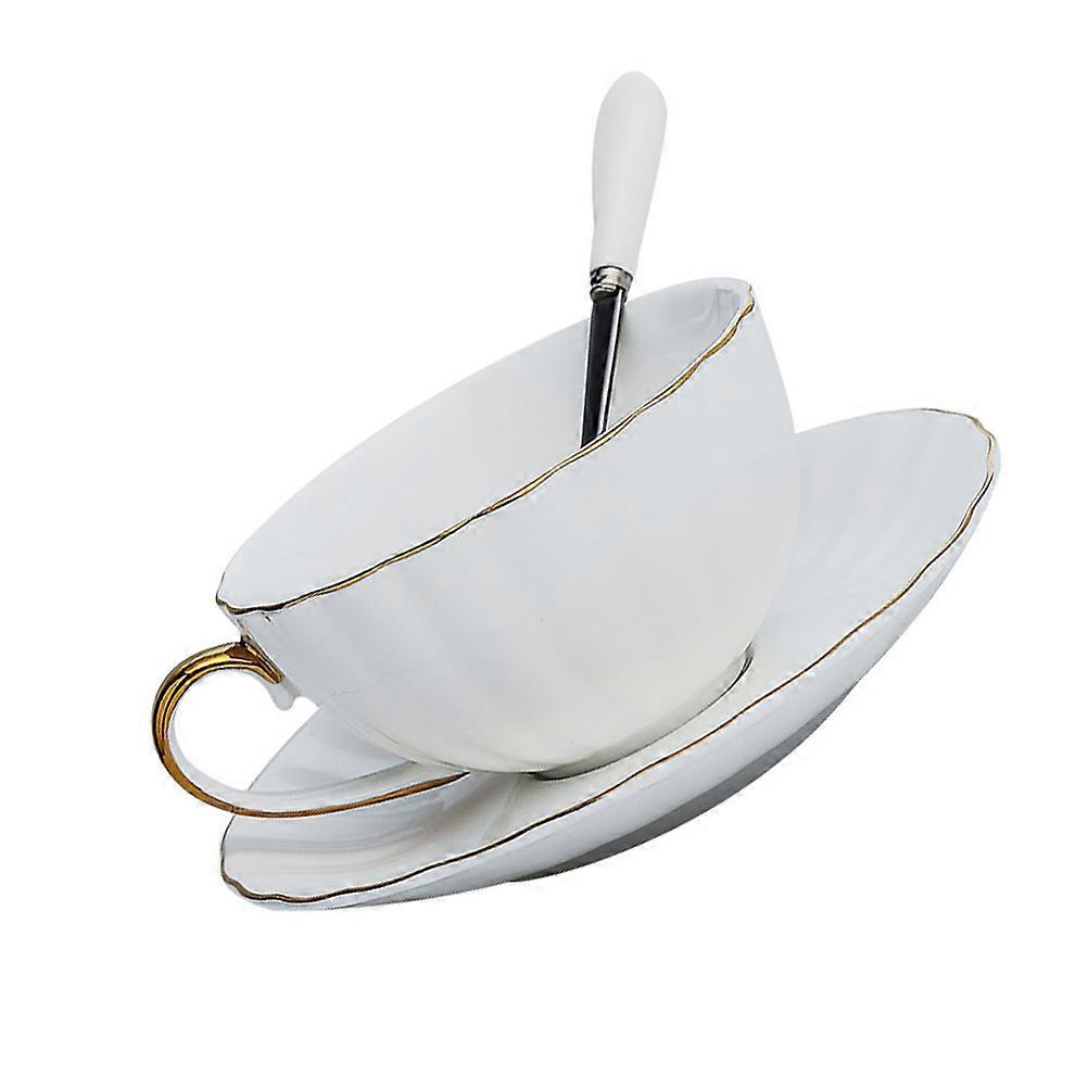 Household Coffee Cup Dish Set for Serving Beverages in White Ceramic Ideal for Bakeries and Dessert Shops