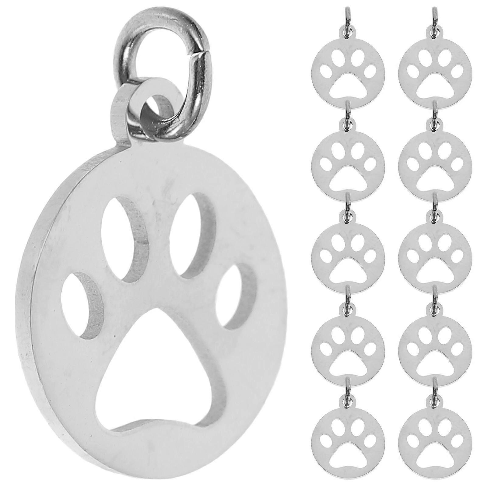 Dog Paw Charms Stainless Steel for Jewelry Making 10Pcs Silver Pendants
