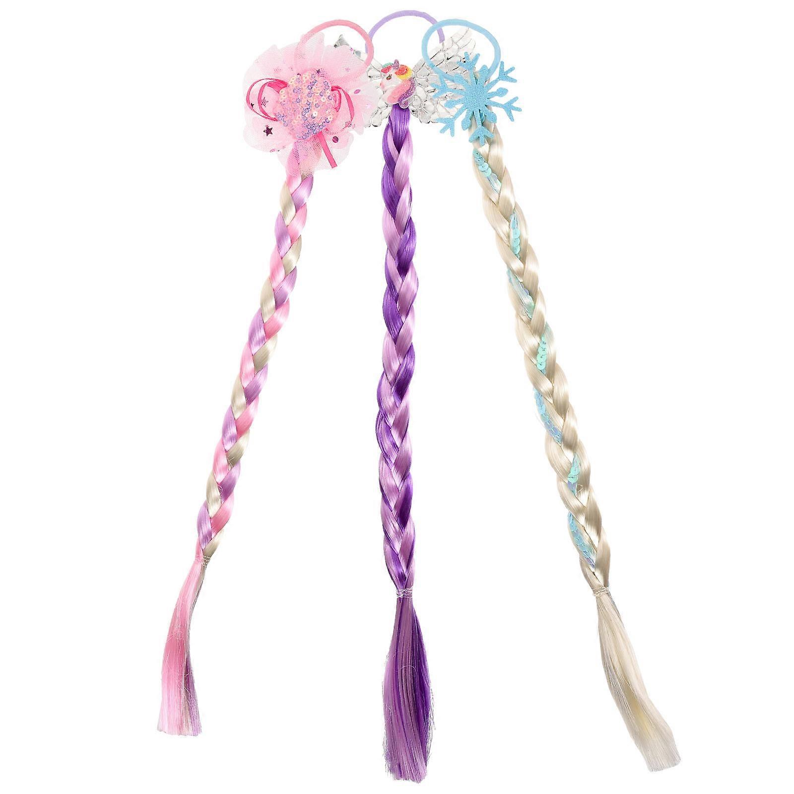 Christmas Hair Braids Bow Braids Wig Headdresses Set for Decoration 3Pcs