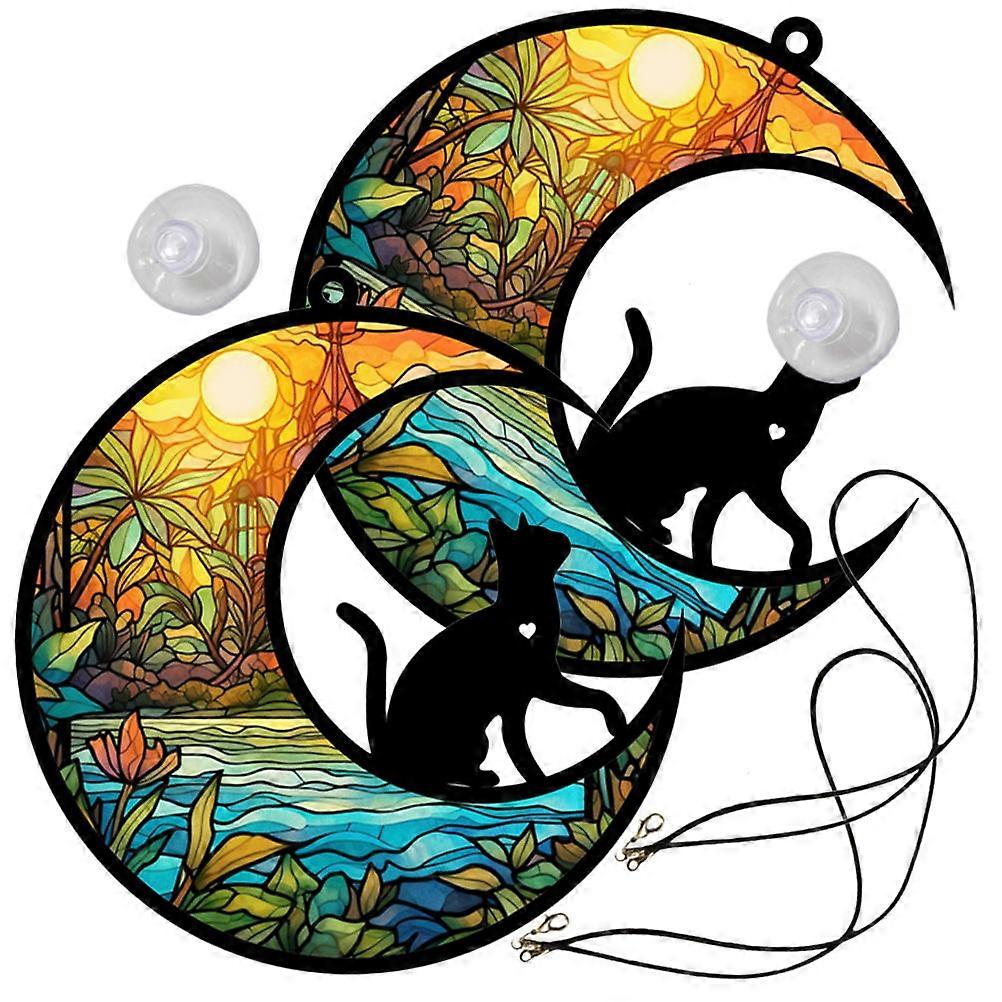 Acrylic Cat Moon Wall Decoration for Hanging 2Pcs Artistic Home Ornament