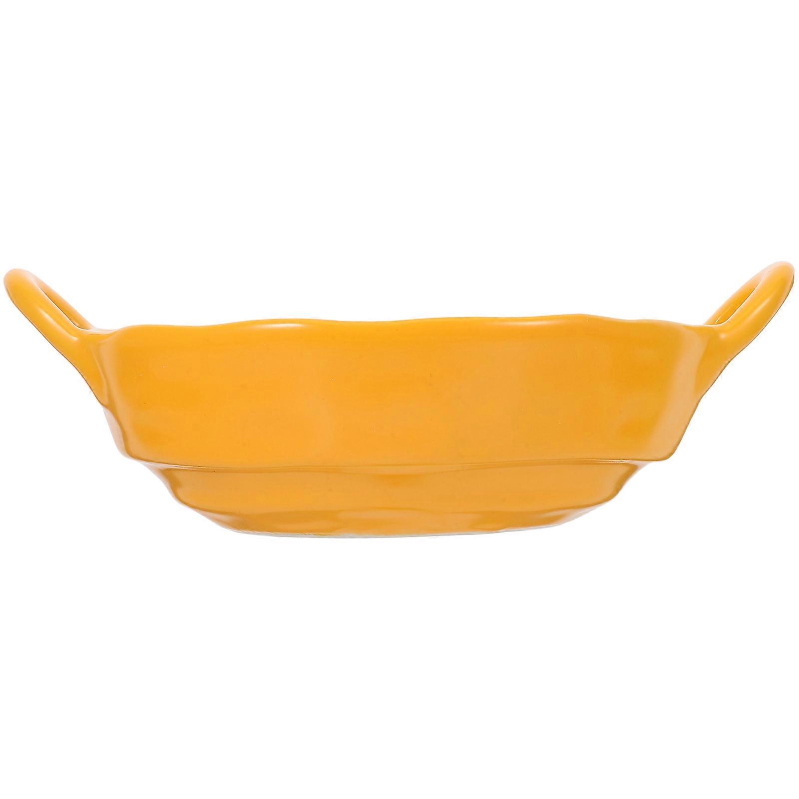 Microwave-Safe Ceramic Mixing Bowl Hammer Texture For Small Party Baking Noodle Bowl Yellow 20.8X16.5X9.7CM 1Pc