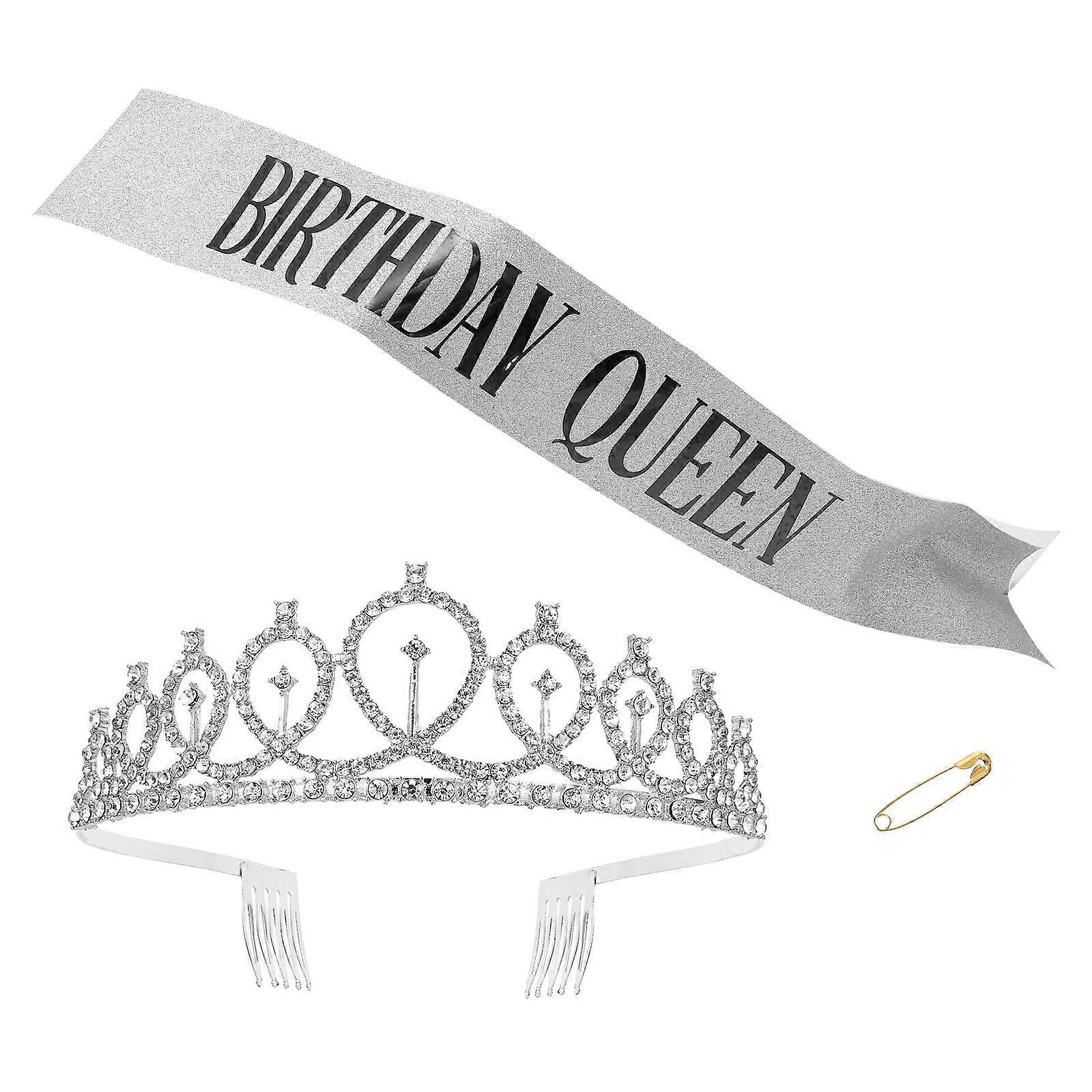 Gift Sash Shape Crown Suit Silver 158x9.5cm Birthday Accessories For Women 2Pcs