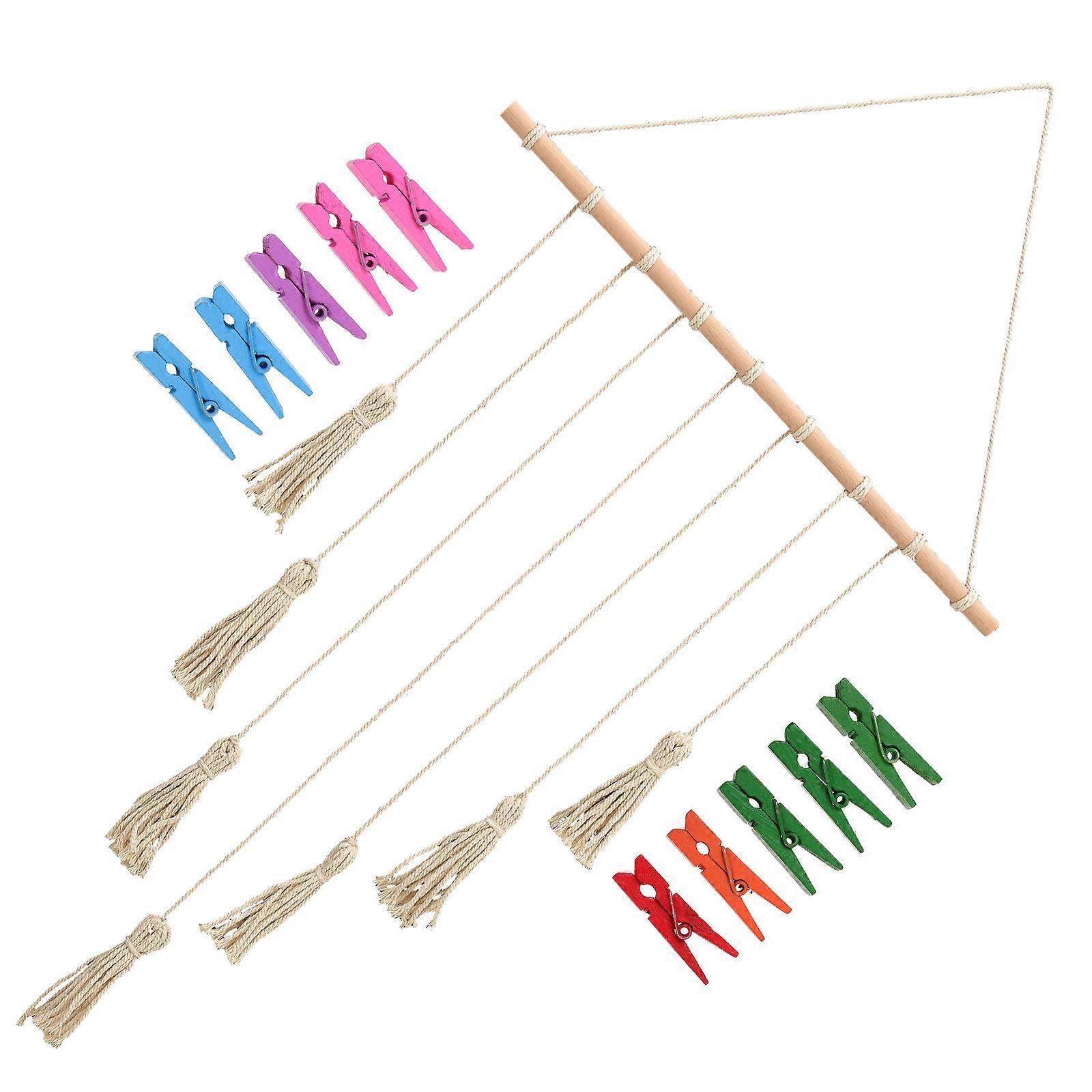 Decorative Home Accessories Wall Hanging Tassel Decor Simple Design Wooden Stick 29.5×15.7×0.4Inch 1Set