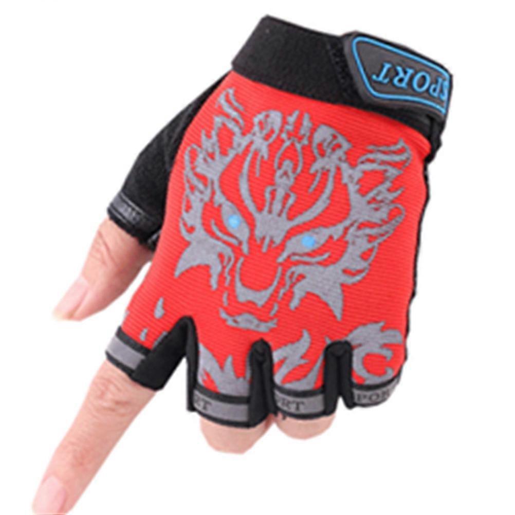 Boys Girls Half Finger Gloves Cycling Sports Gear Size M Red Sweat Absorbing 1 Pair