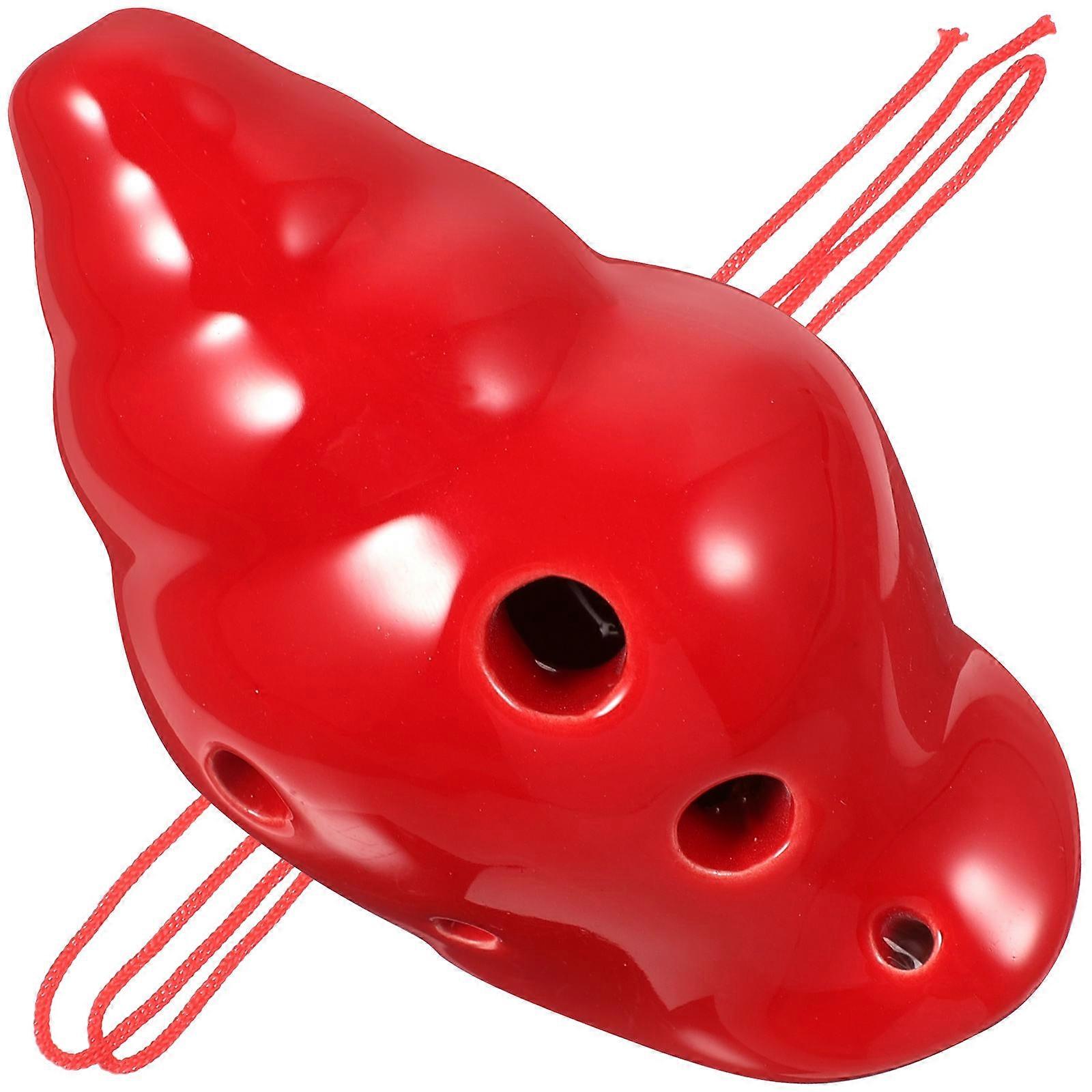 Portable Ceramic Ocarina Red Conch Shape Beginner Travel Souvenir 9X6X4CM 6-Hole 1Pack
