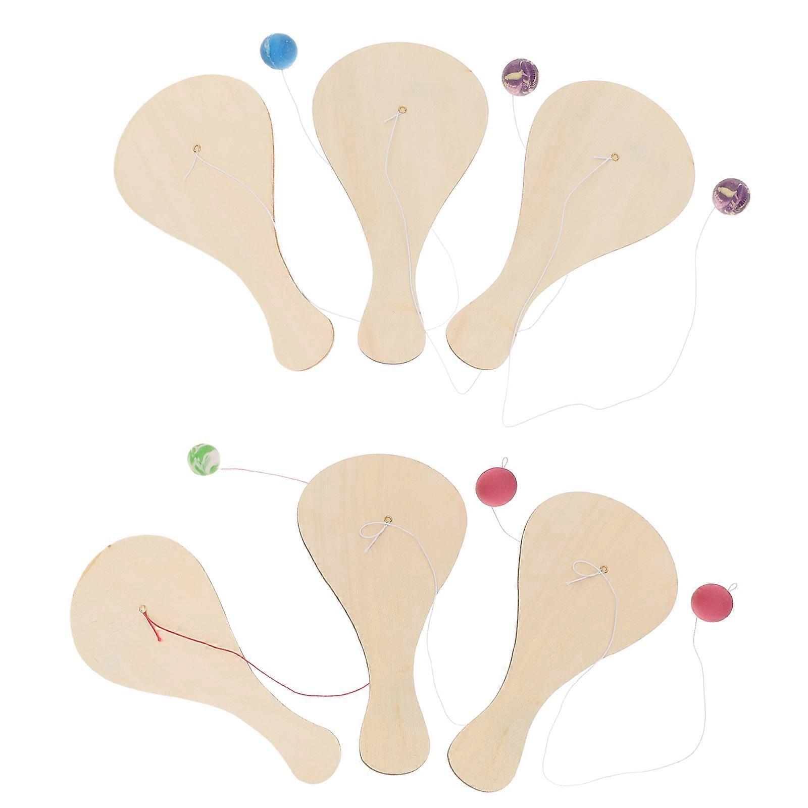 Wood Paddle Ball Game for Kids 6Pcs Indoor Outdoor Paddle Ball Toy Set