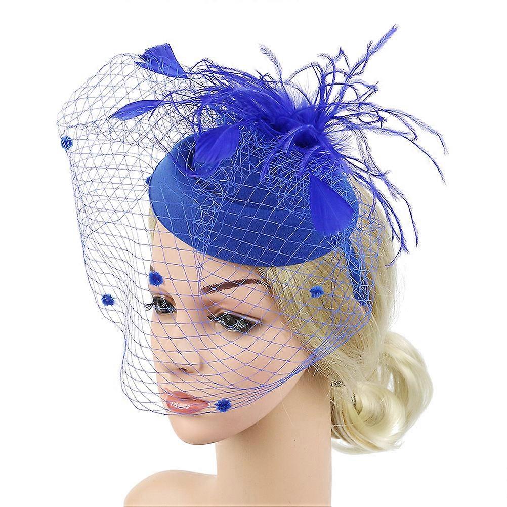 Women Beret Hat European American Style Gauze Headdress Royal Blue For Festival Music Party 1Set