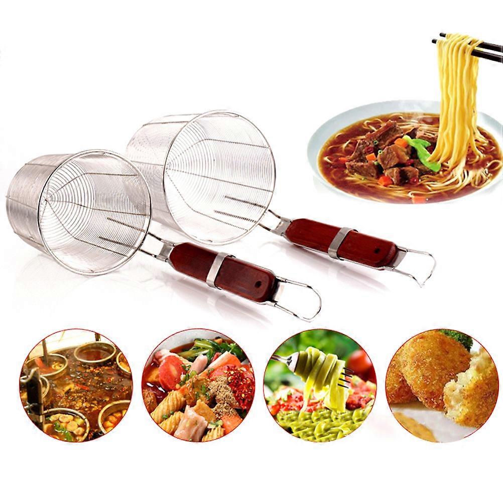 Stainless Steel Strainer Basket with Wooden Handle for Pasta Basket