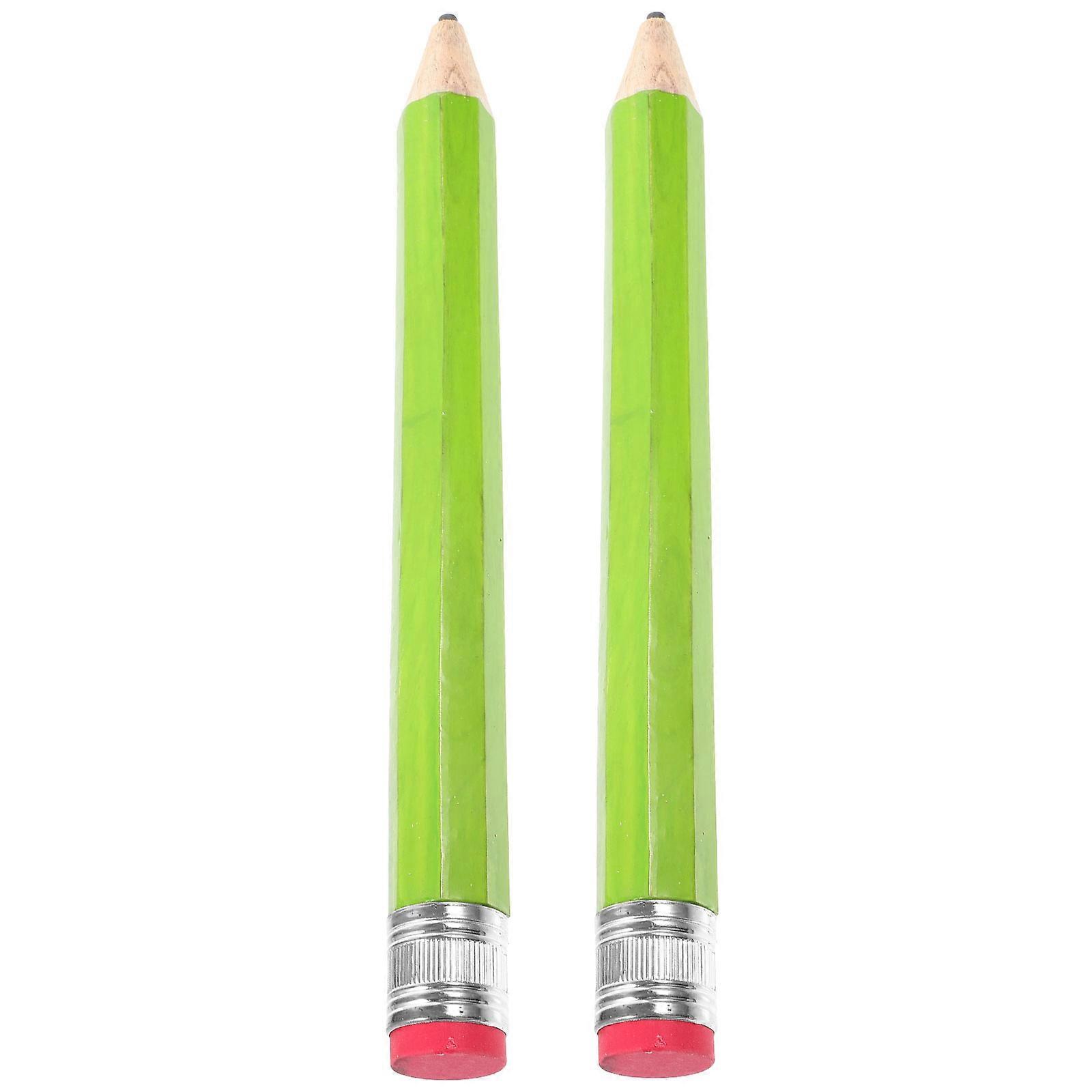 Writing Pencils Natural Wood Pencil Children Adults Use 33cm Cylindrical Shape Green Marking 2Pcs