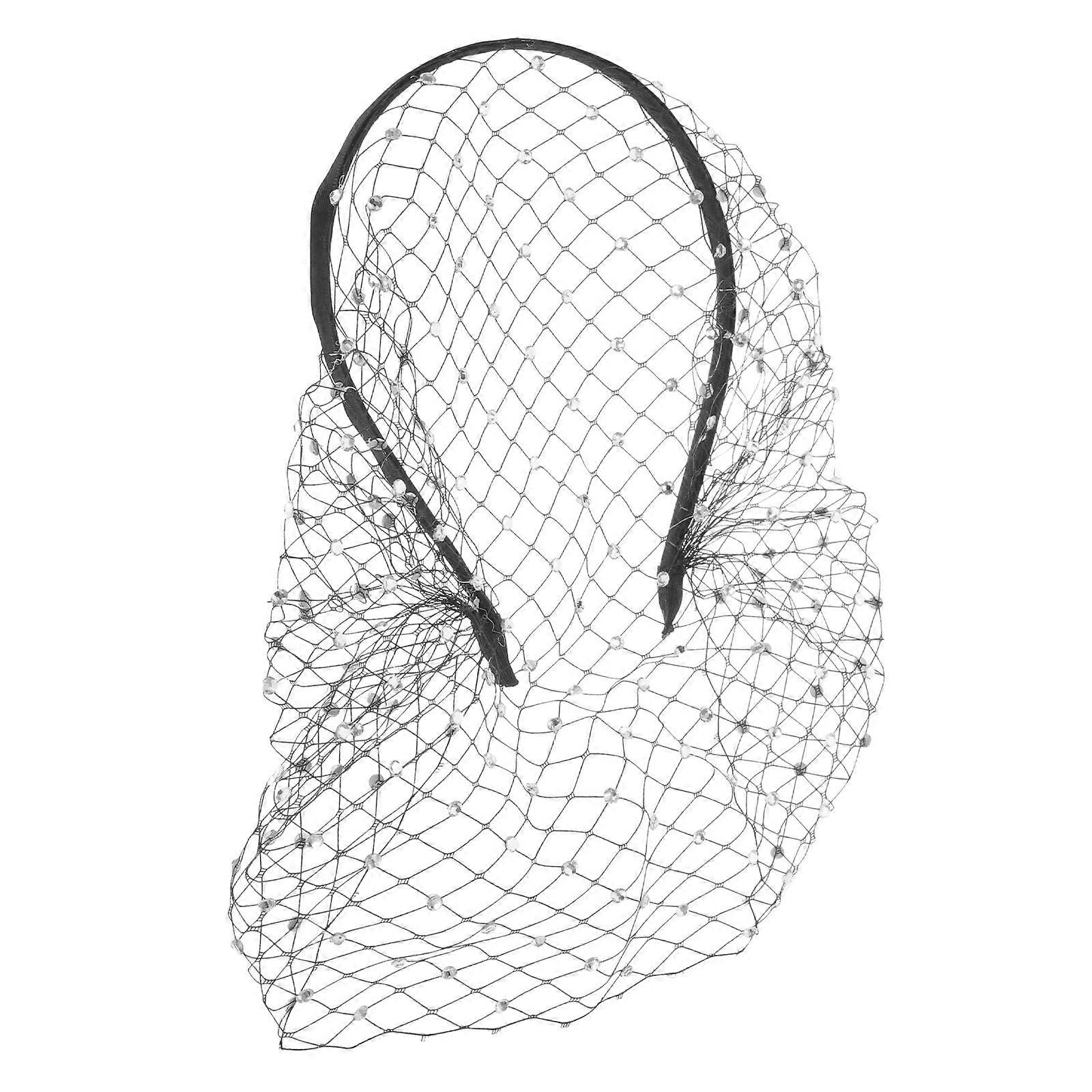 Black Veil Headband with Rhinestone Decorations for Wedding and Tea Party Decoration Cloth Plastic