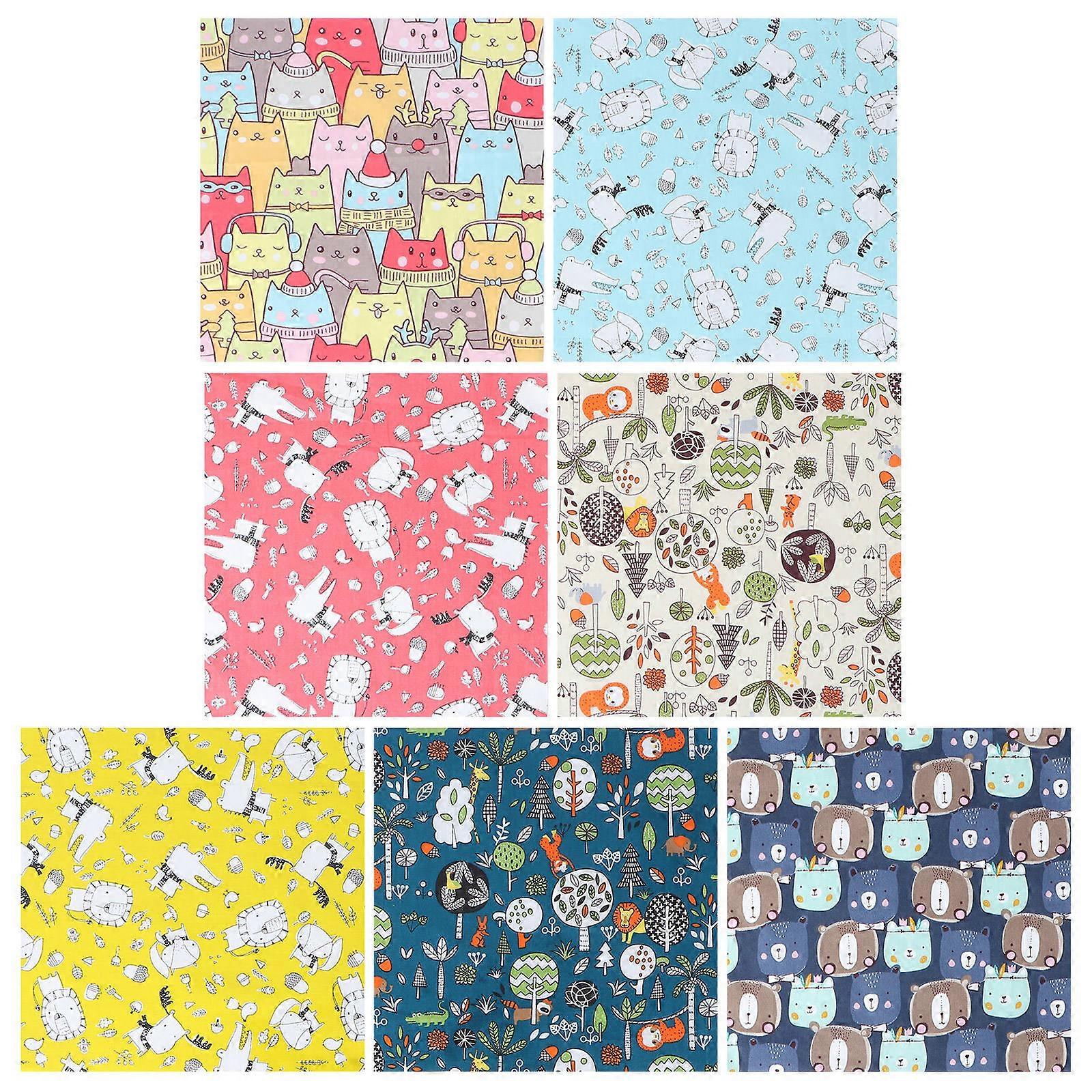 Cartoon Animals Fabric For Sewing 7Pcs Assorted Color Patchwork Cloth Material For Craft Projects Comfortable And Safe