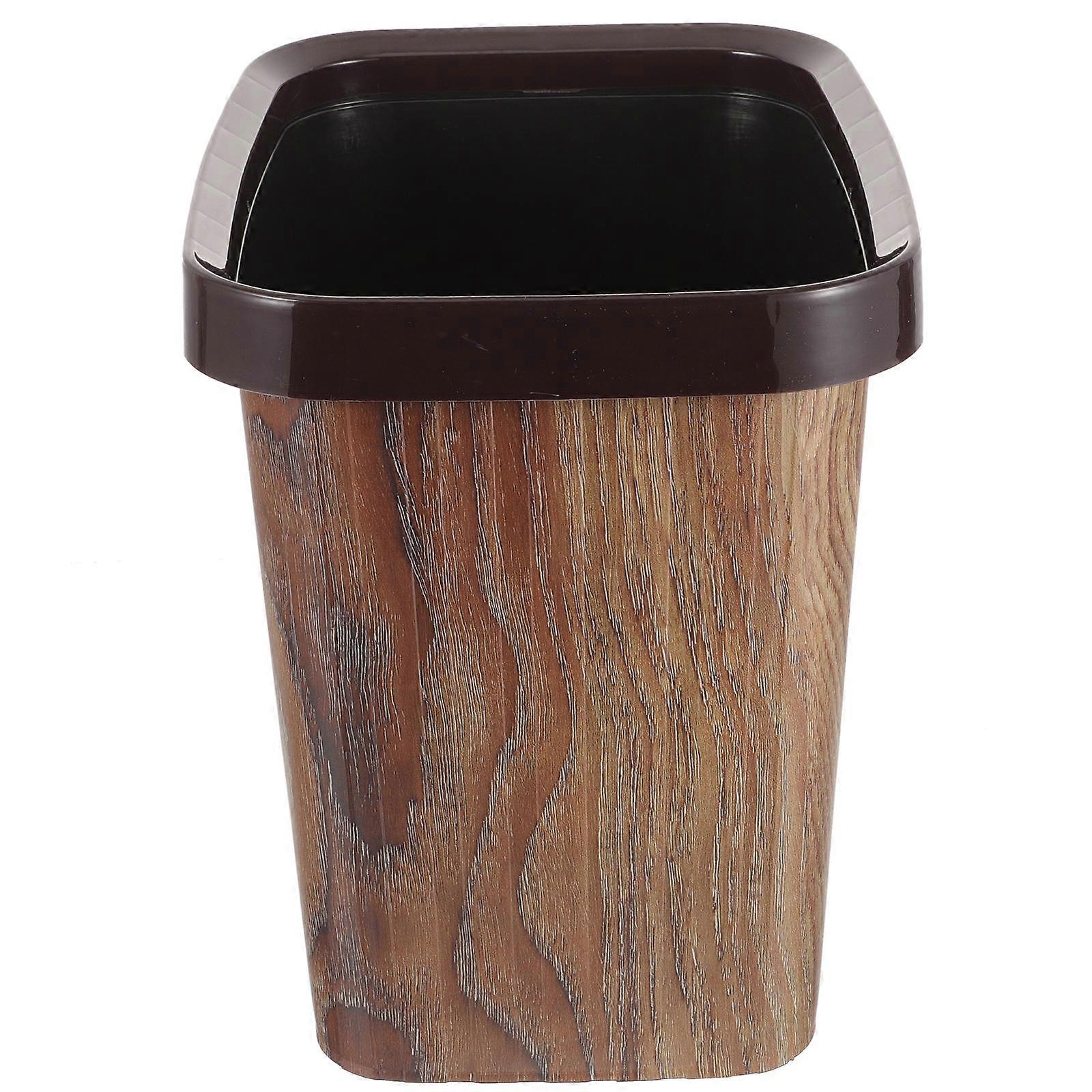 Retro Waste Bin Imitation Wood Grain Garbage Holder for Family Use Large Opening Design 1Pack