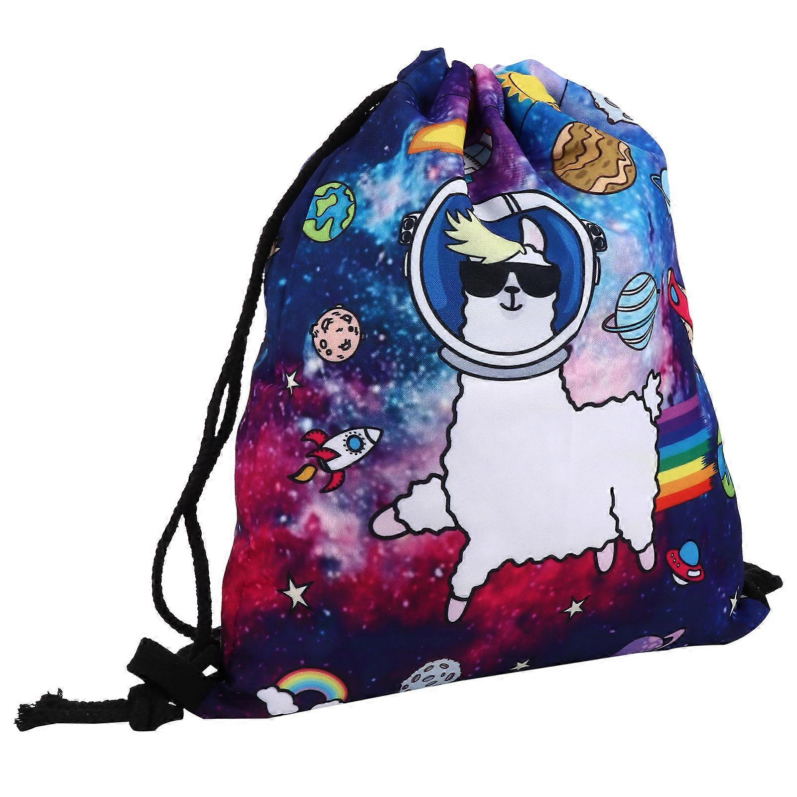 Alpaca Drawstring Bag for Storage 1Pcs Cartoon Printed Kids School Bag