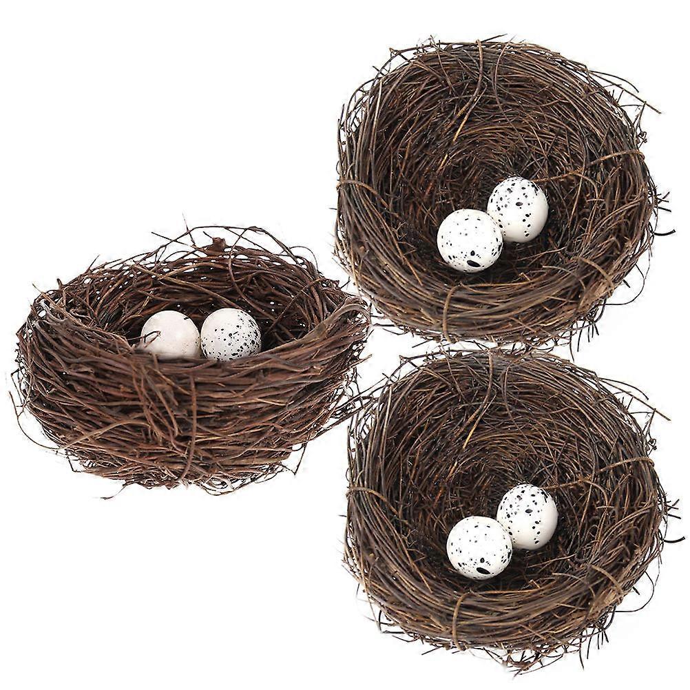 3 Sets Rattan Twig Bird Nest Props with Egg Ornament Photo Prop Artificial Nest