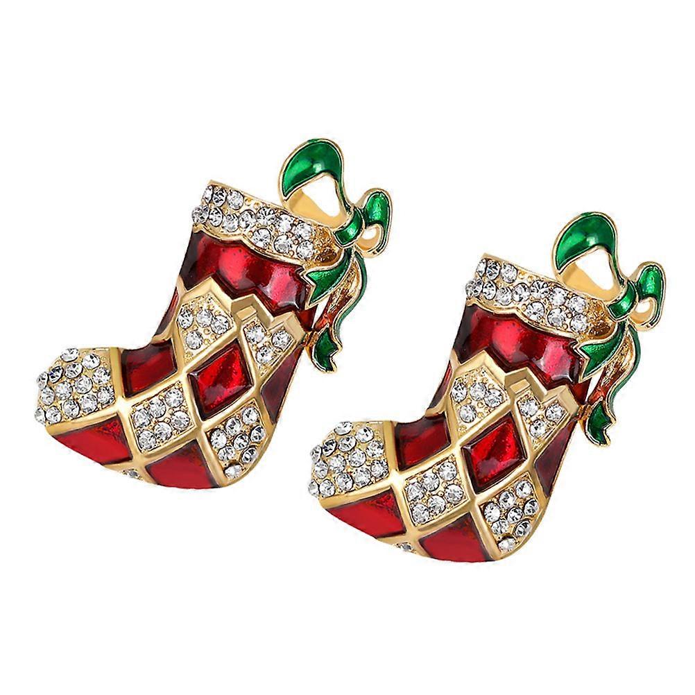 2Pcs Stylish Christmas Brooch Drop Oil Snowflake Socks Cane Color Socks Collar Needle