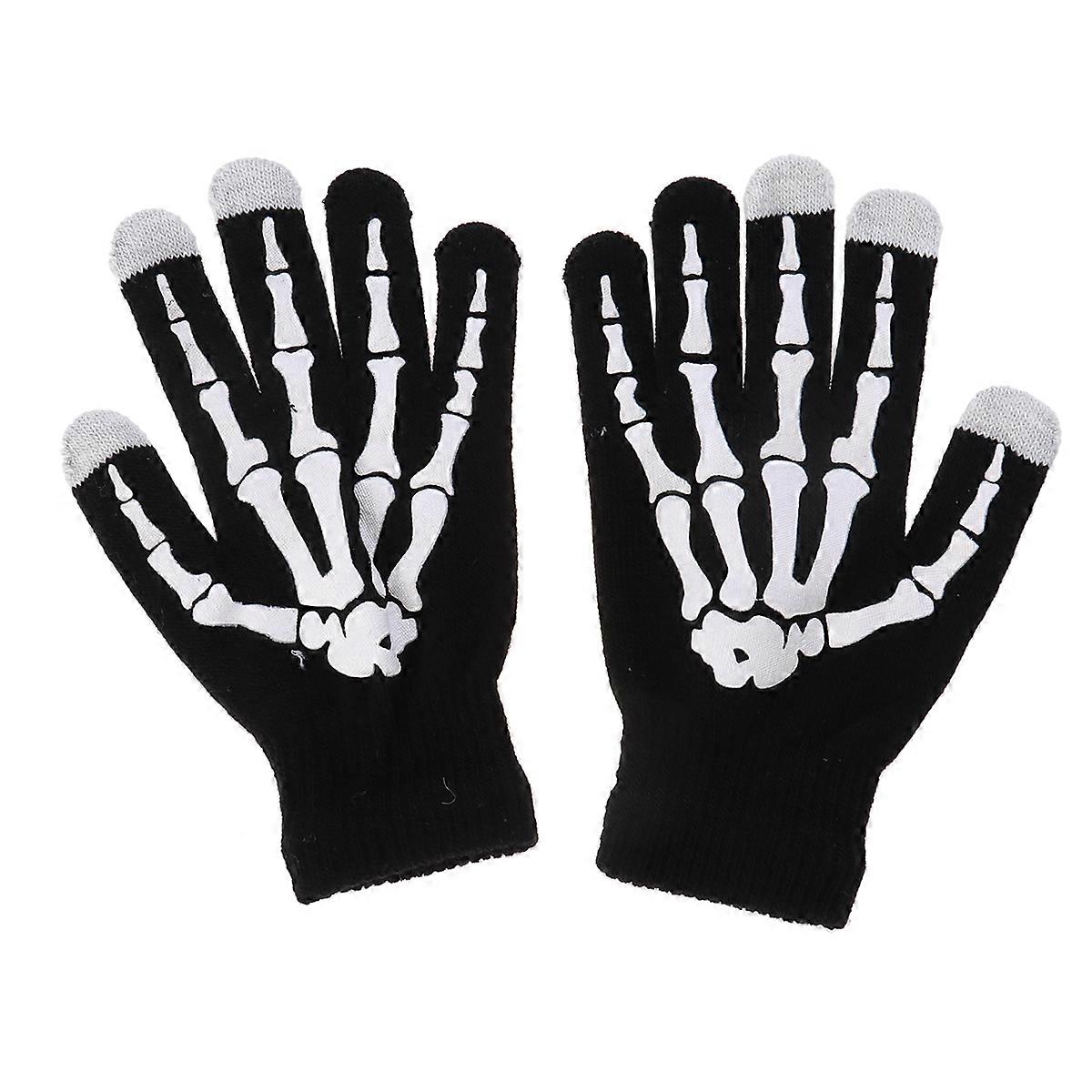 Stylish Skeleton Print Gloves Compatible With Touchscreen Devices Perfect For Halloween Events In White 1 Pair