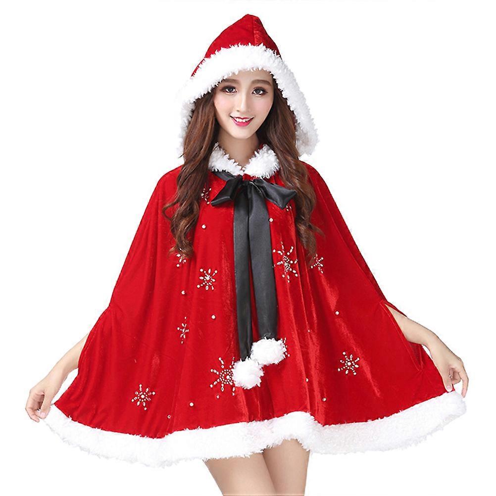 Warm Cloak Adults Christmas Party Cloak Red Hooded Cape Average Size Cosplay Robe 1Pcs