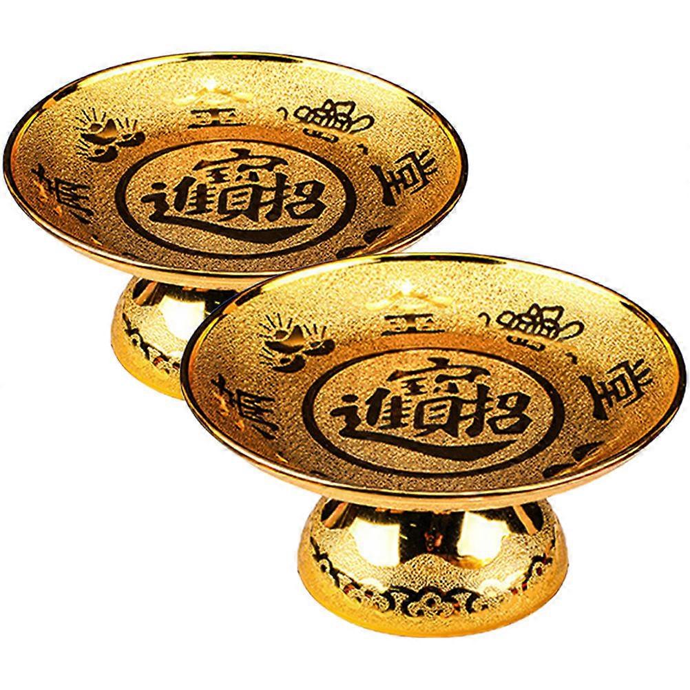 Temple Fruit Tray Footed Offering Plate Golden Color Pp Material Suitable for Family Sacrifice Decoration 2Pcs