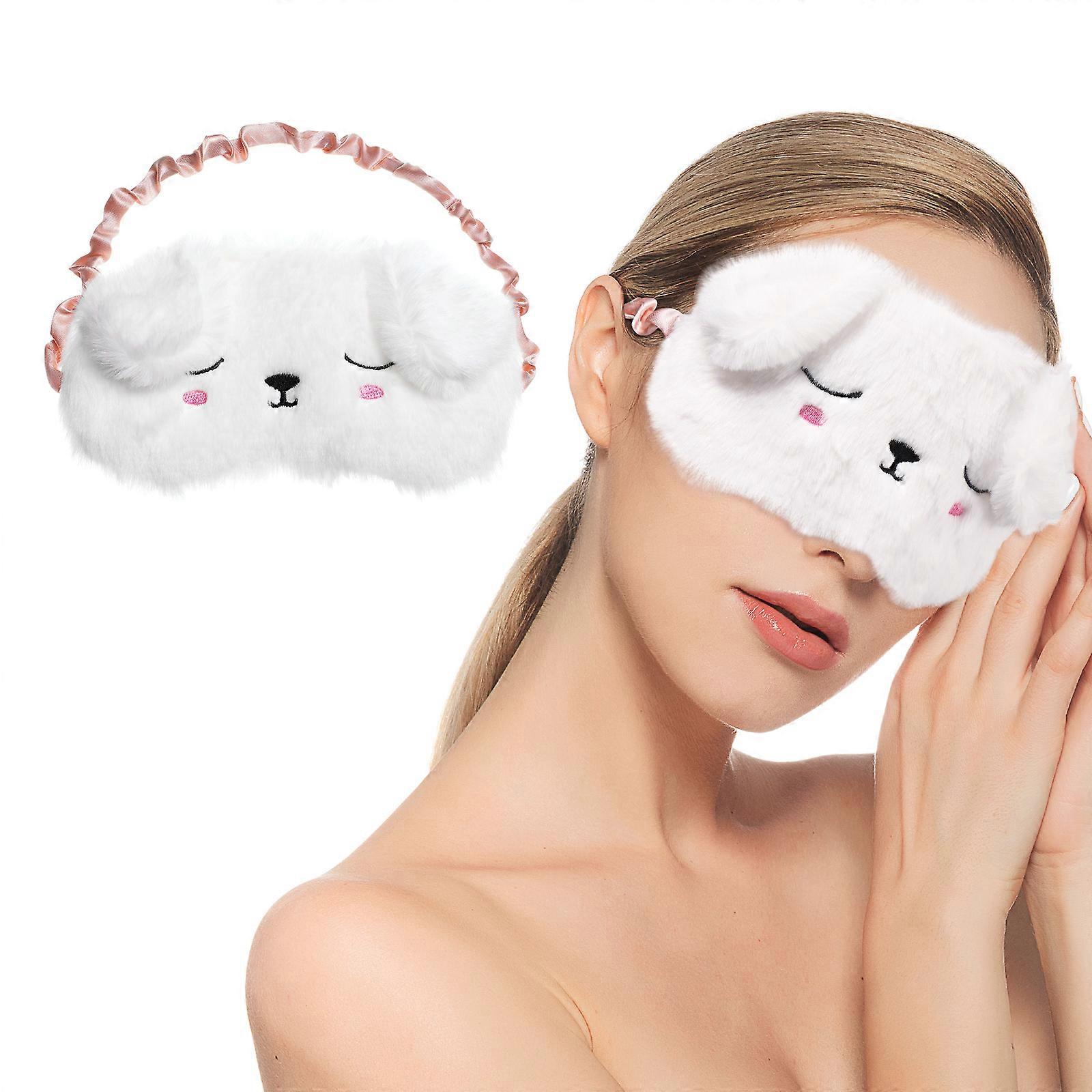 Sleep Mask Plush Eye Mask for Sleeping 1Pcs White Dog Pattern Blindfold