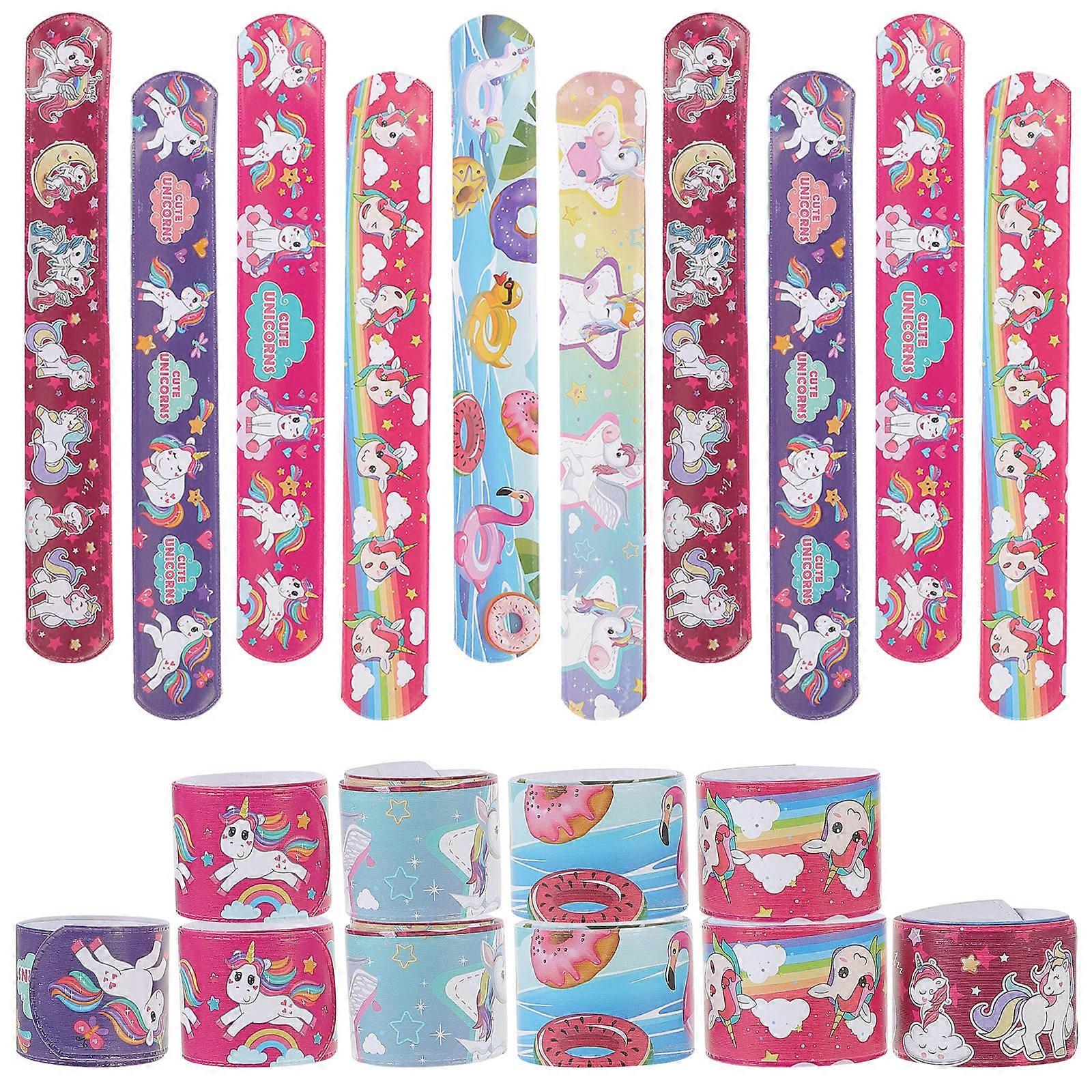 This is slap bracelet, made of selected material, comfortable and , and can be safely decorated on wrist. Creative and interesting ways of dressing can well win the love of people. This is a very simple and fun slap bracelet, which can bring of fun to your and is a practical choice for party toys. Features -Color:Assorted Color -Material:PVC, steel sheet -Size:22.00X3.00X0.10cm/8.65X1.18X0.04in -Note:Random Pattern - One of the must-haves for party is a slap bracelet that makes you stand out from the crowd. - Using classic unicorn theme design, lovely and vivid, can create a warm atmosphere. - Can provide great flexibility and elasticity, the slap bracelet is suitable for long time wear. - Unicorn theme slap bracelet is mainly made of PVC, steel sheet, light but strong, not easy to fade or break. - Perfect gift choice for events, parties, game prizes, student prizes and goodie bags. Package list: 20 x Unicorn Slap Bracelets