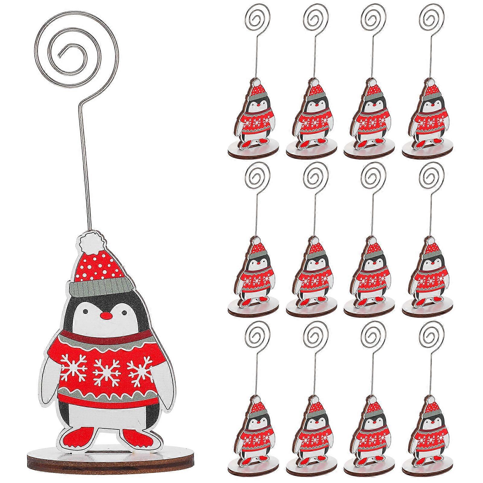 Penguin Patterned Message Holder 12Pcs For Christmas Party Home Decoration And Office Use In Multi Wooden Bamboo Material