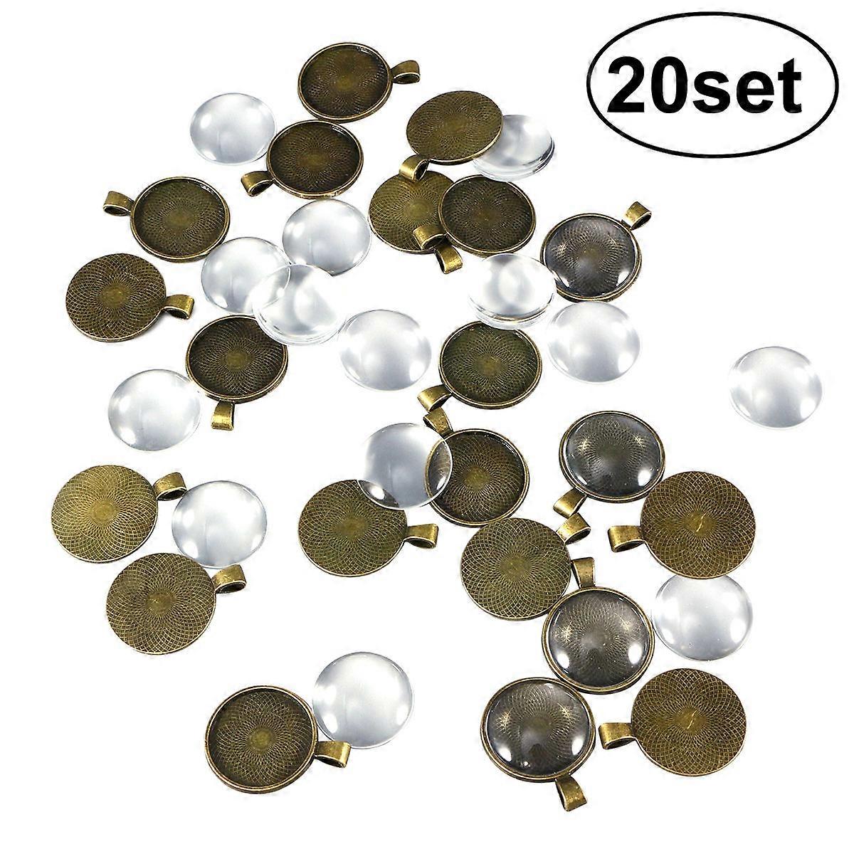 Alloy Round Bezel Pendant Trays for 20Set with Glass Dome Tiles