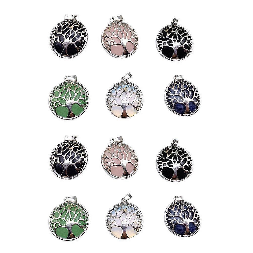 12Pcs Natural Crystal Pendants Alloy Tree Charms for DIY Jewelry Findings