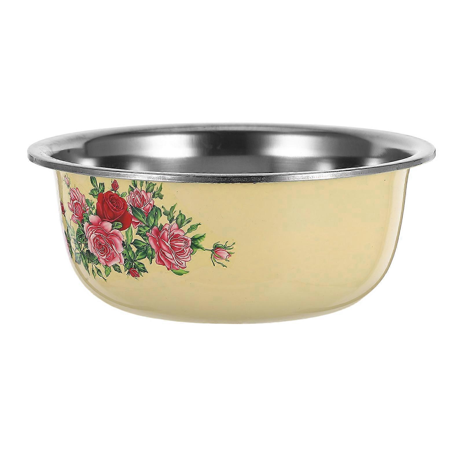The stainless steel bowl is ideal for a range of kitchen tasks, from mixing dough to serving soups and salads. Its retro design adds a touch of nostalgia to your kitchen decor. The bowl's robust build it can withstand regular use, making it a reliable addition to your kitchenware collection. Features - Color: Multi -Material:Stainless steel - Size: 22.50X22.50X8.30cm/8.84X8.84X3.26in -Note:the pattern is random style - Construction: crafted from stainless steel, this bowl offers exceptional longevity and resistance to wear and tear -Versatile kitchen tool: ideal for mixing, kneading dough, or storing, this bowl is a practical addition to any kitchen -Aesthetic appeal: the enamellike finish provides a retro and attractive look, making it a stylish kitchen accessory - Easy maintenance: the nonporous surface easy cleaning and prevents the buildup -Wide application: for various settings including home kitchens, restaurants, and canteens, enhancing overall kitchen productivity Package list: 1 x stainless steel mixing bowl