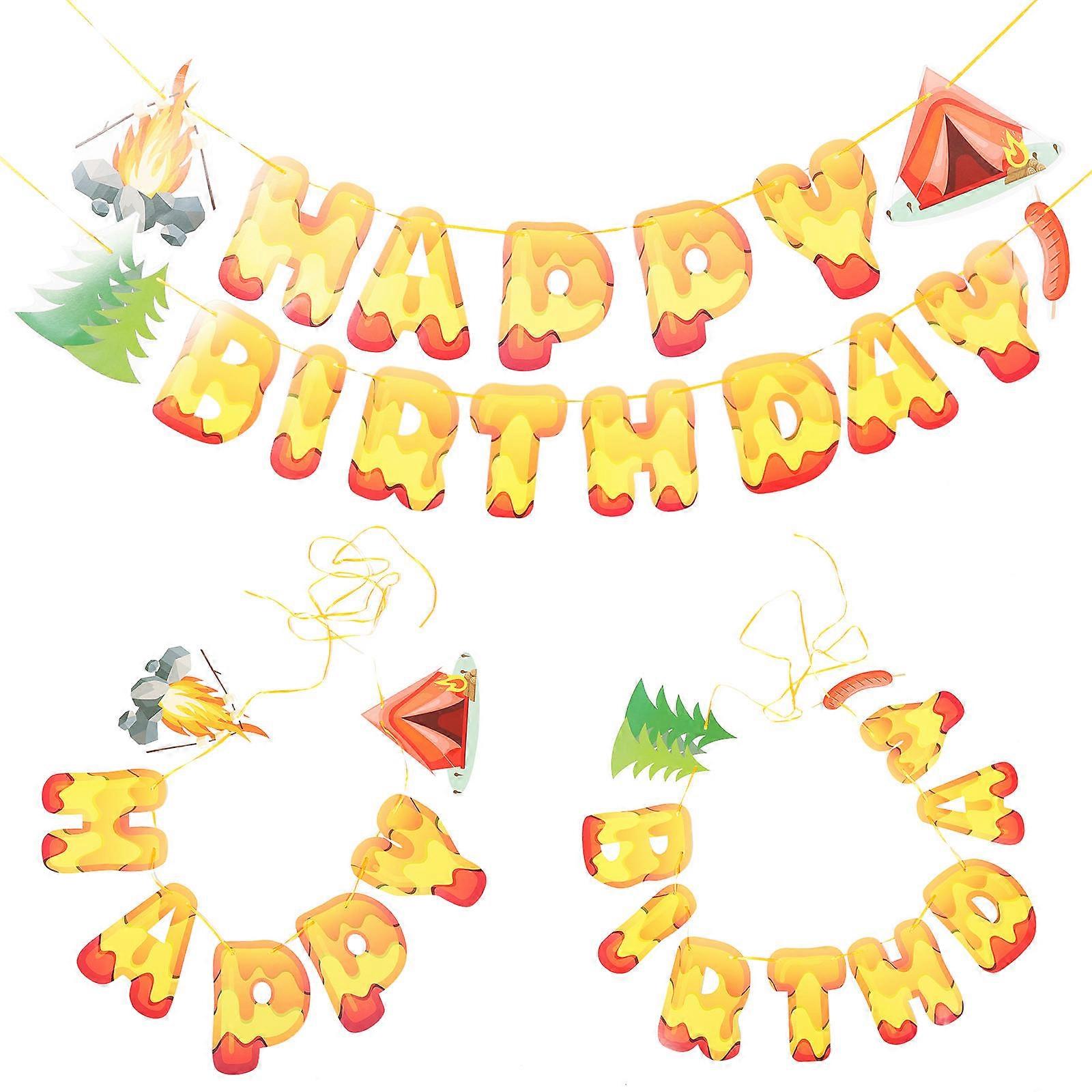 Barbecue Design Bunting Decor Assorted Color Rectangle Shape Birthday Party 3Pcs 15x11.5cm