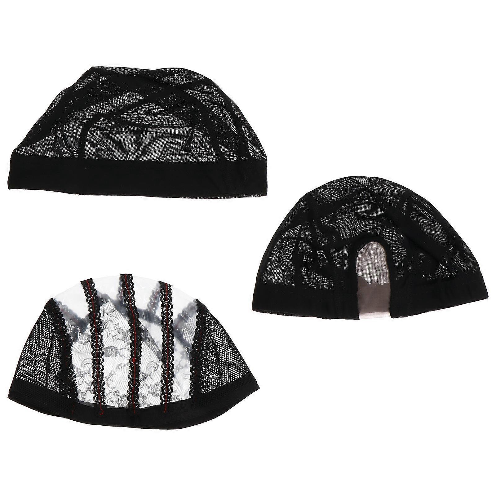 Black Wig Net Cap Made of Nylon Lace for Hair Care 3Pcs Pack