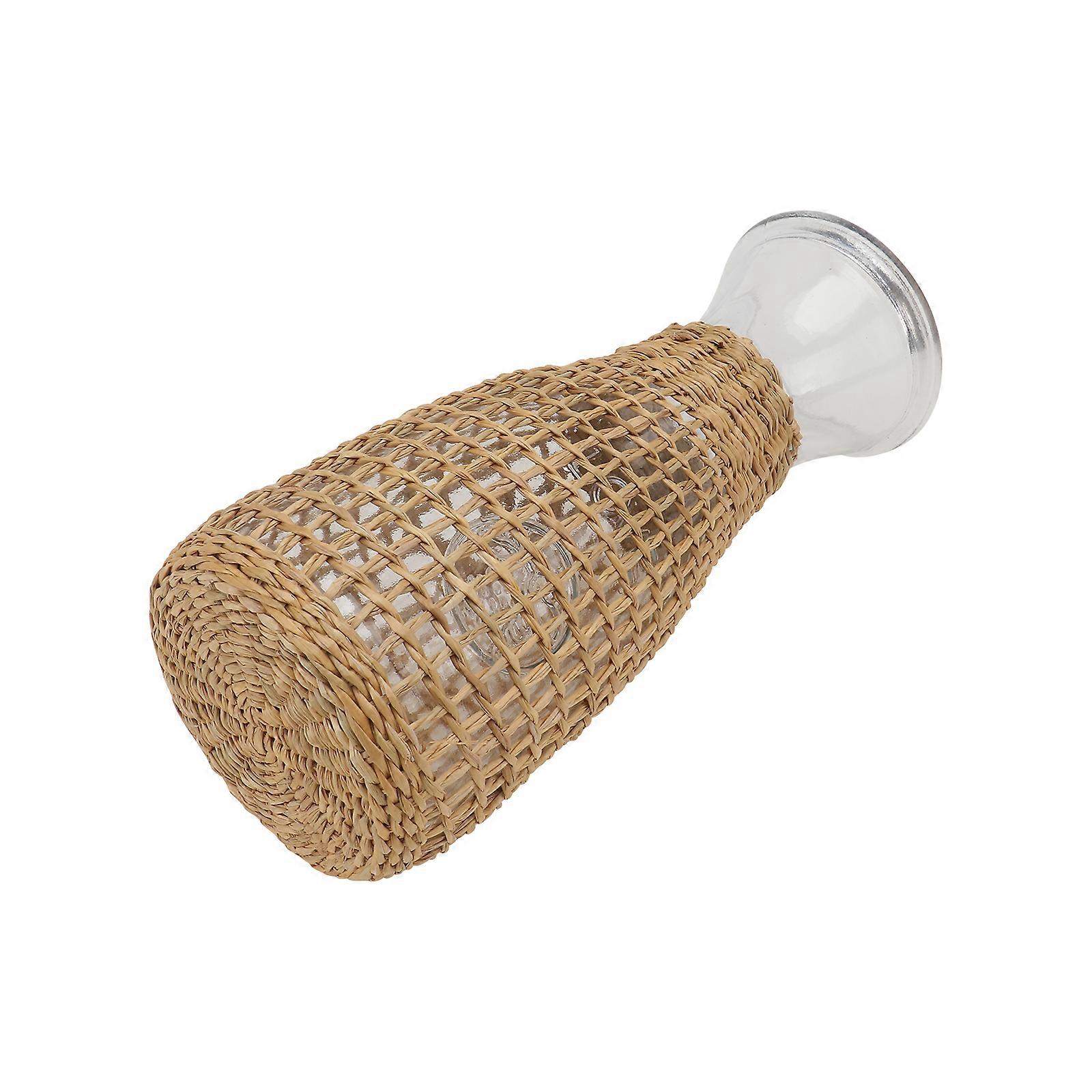 Glass Vase Adornment Straw Woven for Flower Container 1Pcs Decorative Vase