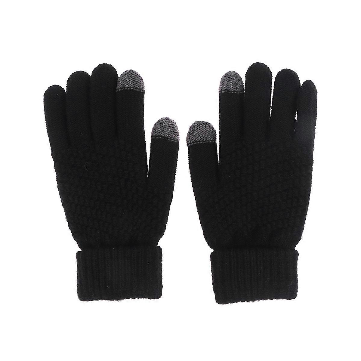 Warm Solid Touch Screen Gloves Full Finger Knit Mittens For Cold Weather Black Perfect For Climbing And Campings 1 Pair