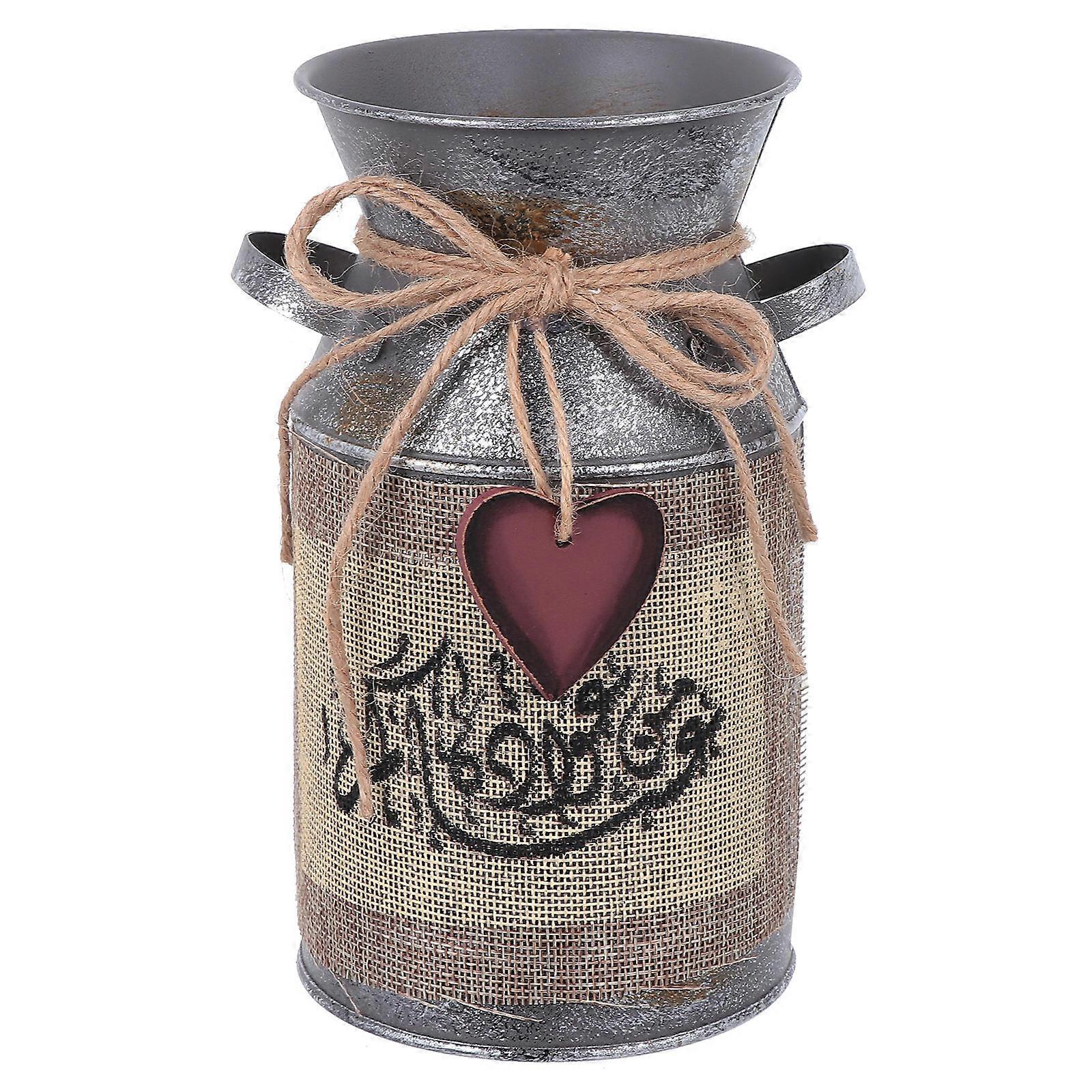 Rustic Jug Bucket Iron for Study Silver Flower Arrangement Decoration Props 1Pcs