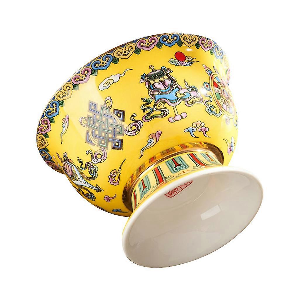 Yellow Ceramic Sacrifice Bowl Buddhist Offering Bowl for Storage
