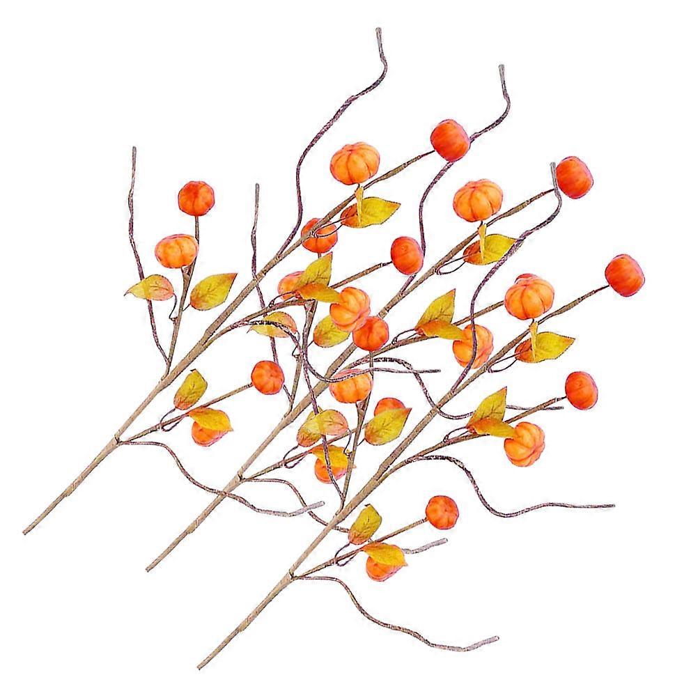 Fall Pumpkin Branch Artificial Pumpkin Berry Stems Vase Filling Home Decor Orange 65x35cm Rustic Farmhouse Decor 3Pcs